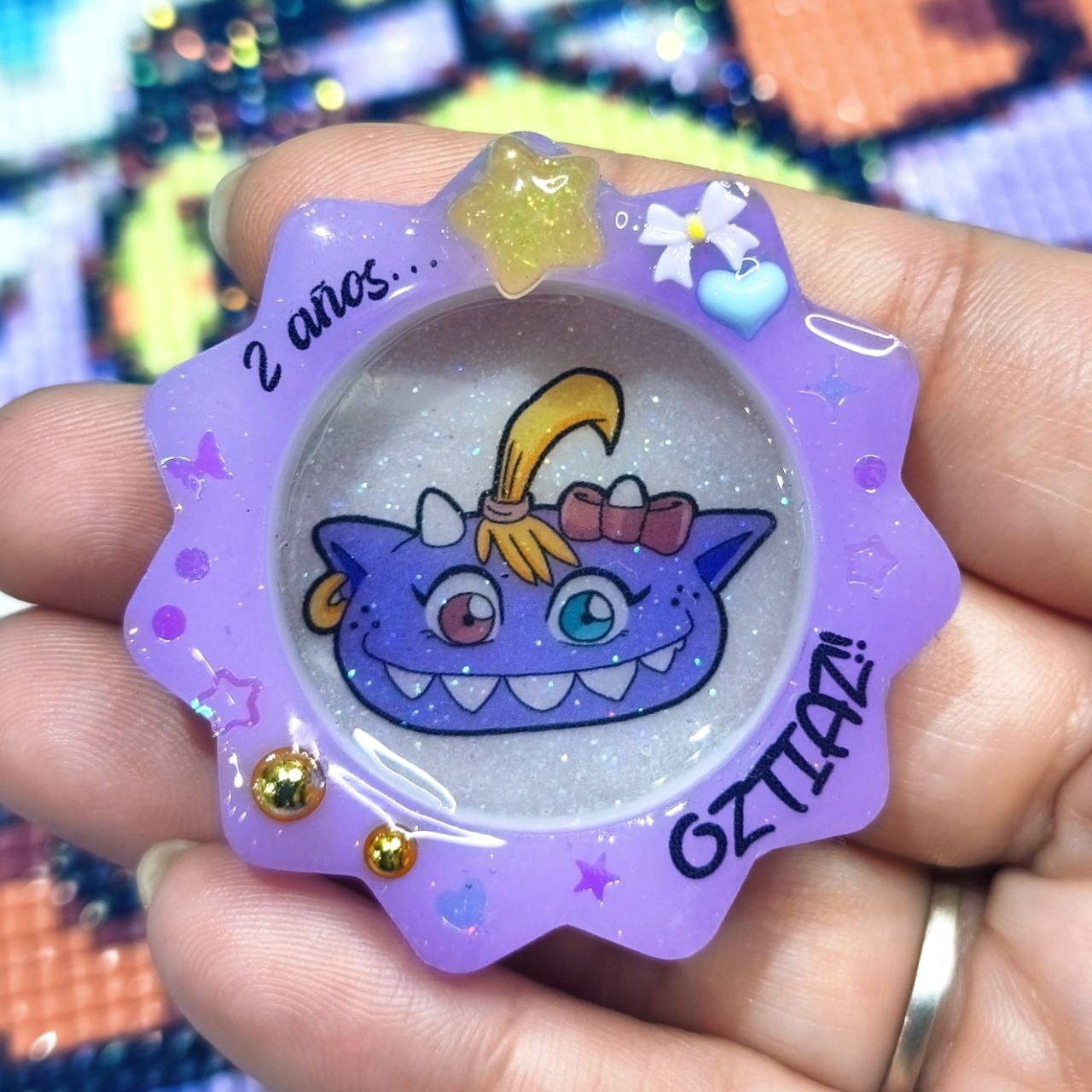 Bandejita cover segundo aniversario de Glitter Kaiju! Con imán, para usar como papelera de diamantes